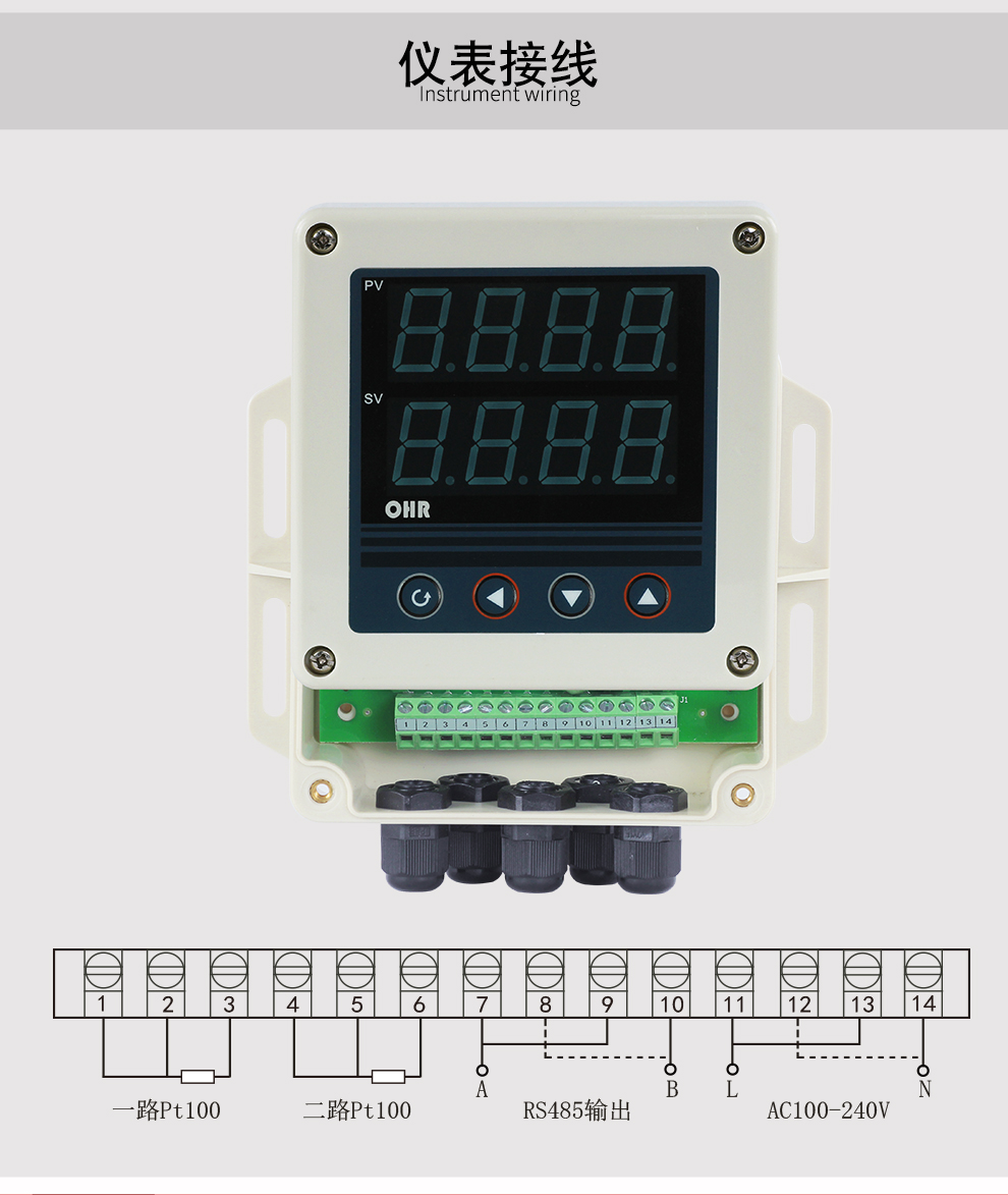 OHR-XTRT系列溫度遠傳監(jiān)測儀采用了表面貼裝工藝,全自動貼片機生產(chǎn),具有很強的抗干擾能力。本儀表支持兩路PT100輸入,實現(xiàn)對溫度物理的測量顯示,帶RS485通訊輸出功能,帶雙屏數(shù)碼管顯示,上窗口顯示第1路測量值,下窗口顯示第2路測量值。