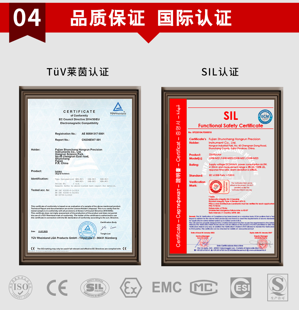 虹潤公司是專業生產隔離器的國家專精特新“小巨人”企業。生產的配電器,具有配接二三線制變送器,采用磁隔離技術,響應時間快,抗干擾能力強,24V配電輸出,性價比高等特點。該產品不僅通過德國萊茵 CE 認證與 SIL 功能安全認證,還獲得信號隔離器、二端子模塊、無源信號隔離器等3項國家發明專利,主持起草現場設備工具(FDT)接口規范、工業過程測量和控制系統用隔離式安全柵、工業過程測量和控制系統用配電器等3項國家標準,以及通信系統多通道數據采集控制終端規范軍用標準,參與國際5G標準制定。產品廣泛應用于石油、化工,冶金、電力、食品、光伏能源、污水處理等需要電隔離的工業自動化控制系統。