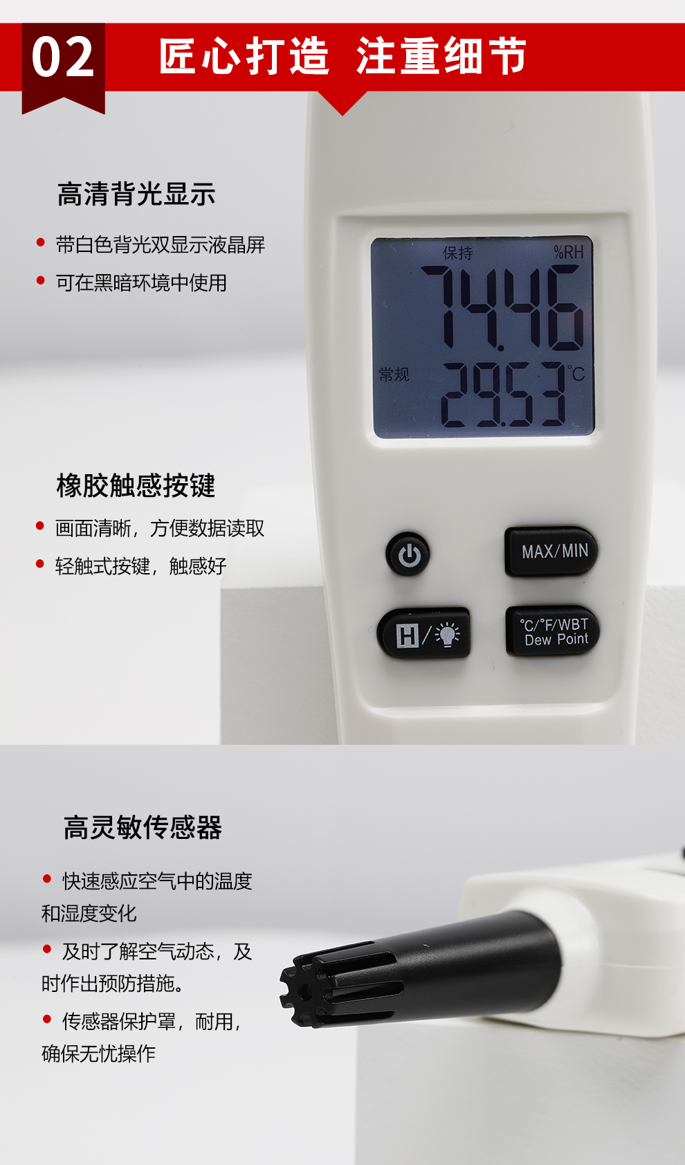 虹潤公司是專業生產環境監測儀表的國家專精特新“小巨人”企業。生產的手持式溫濕度檢測儀,具有測量精度高,多參數測量,最大最小值記錄,小巧便捷、低功耗省電設計等特點。產品獲得一種手持式低功耗溫濕度檢測儀、大屏幕溫濕度記錄儀等2項國家發明專利,主持起草物聯網智能溫度儀表通用技術條件、冷鏈溫度記錄儀等2項國家標準,以及通信系統多通道數據采集控制終端規范軍用標準,以及現場設備集成等5項智能制造國家標準,參與國際5G標準制定,取得環境溫濕度測試儀等3項相關軟件著作權。產品廣泛應用于實驗室、博物館、農業大棚、生產車間、倉庫、配電機房等諸多領域。