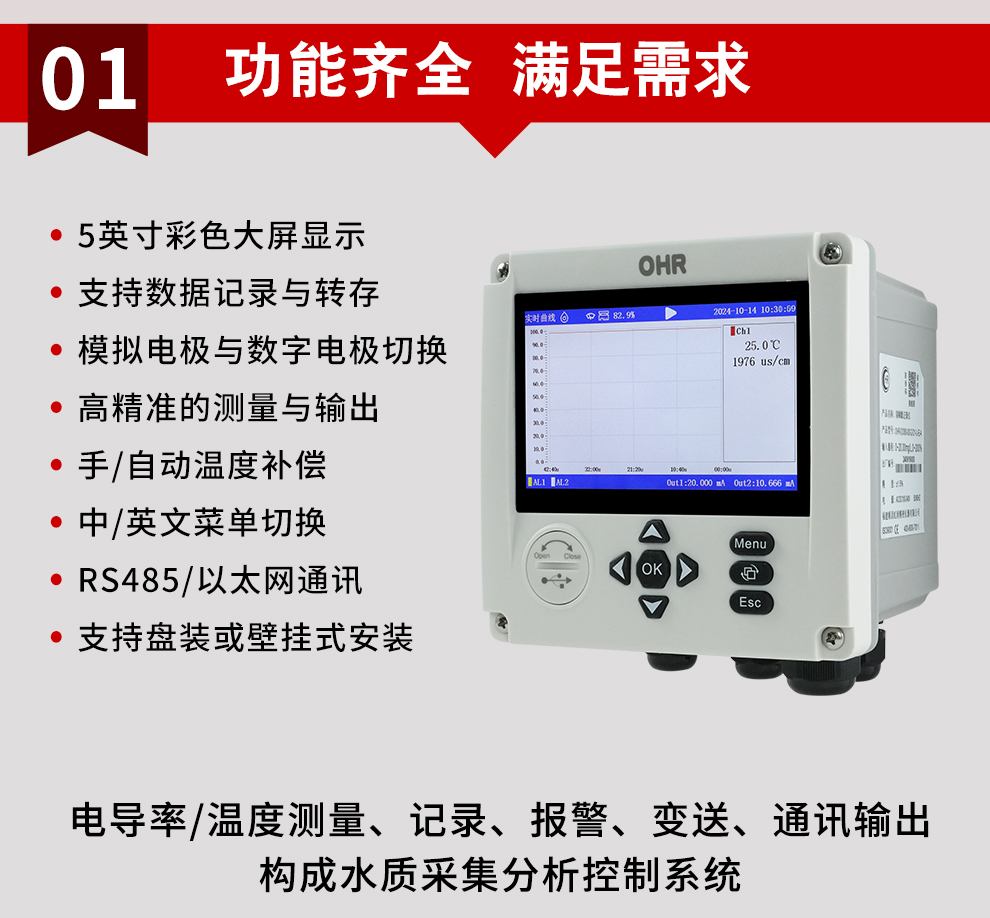 虹潤公司是專業生產水質分析儀的國家專精特新“小巨人”企業。生產的電導率記錄儀,具有模擬電極與數字電極切換輸入、測量精準穩定不跳字,數據記錄與轉存、RS485/以太網通訊,配套上位機管理軟件等特點。產品獲得一種平板無紙記錄儀、智能化控制器等2項國家發明專利;主持起草物聯網智能記錄儀表通用技術條件、現場設備工具(FDT)接口規范.、過程分析技術系統等3項國家標準,以及通信系統多通道數據采集控制終端規范軍用標準,參與國際5G標準制定,取得電導率無紙記錄儀表等4項相關軟件著作權。產品廣泛應用于環保水務、市政供水、水產養殖、農業灌溉、科研實驗等諸多領域。