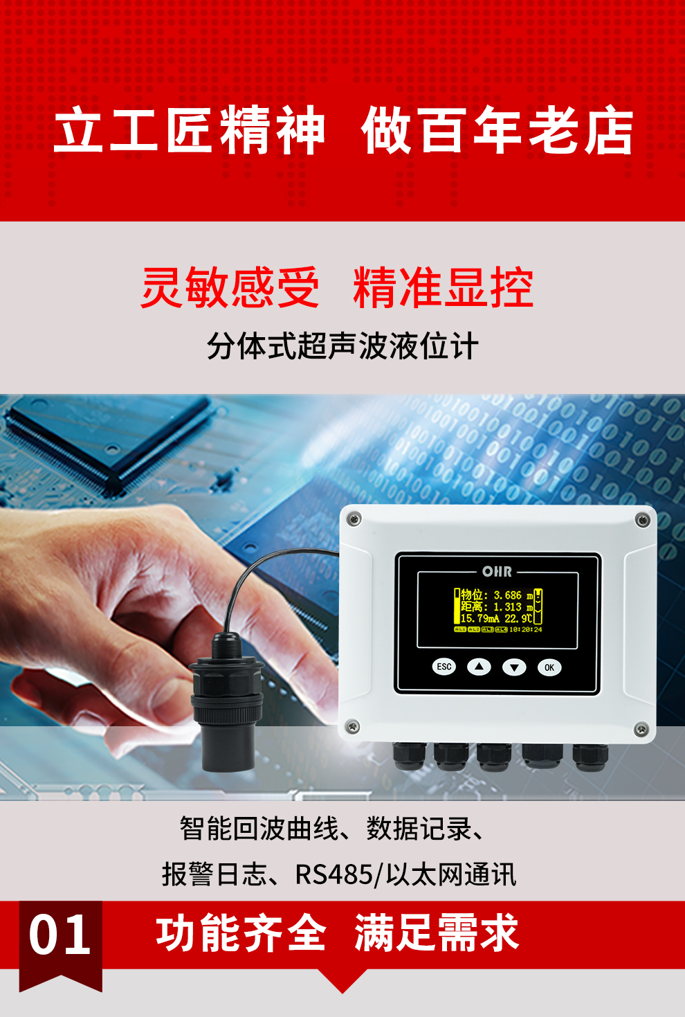 虹潤公司是專業生產超聲波液位計的國家專精特新“小巨人”企業。生產的分體式超聲波液位計,具有數據記錄與轉存,智能回波曲線顯示,RS485/以太網通訊,報警繼電器輸出,報警日志等特點。產品獲得無紙記錄儀以及一種信號發生裝置等2項國家發明專利,主持起草物聯網智能記錄儀表以及工業過程控制系統用模擬輸入兩位或多位輸出儀表等2項國家標準,以及通信系統多通道數據采集控制終端規范軍用標準,參與國際5G標準制定,取得超聲波液位計等2項相關軟件著作權。產品廣泛石化、電力、食品、污水處理、市政設施等諸多領域。
