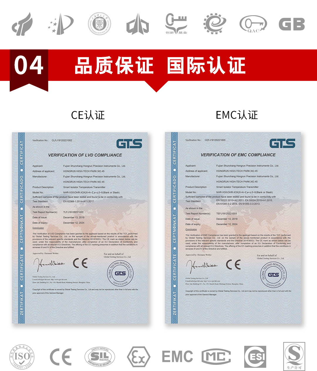 虹潤公司是專業生產溫度變送器的國家專精特新“小巨人”企業。生產的導軌式智能溫度變送器,具有高清顯示單元,溫度傳感器類型及量程可設置,寬范圍電源供電,高抗干擾,帶RS485通訊等特點。產品獲得具備減震抗干擾能力的溫度變送器、信號隔離器、一種二端子模塊、無源信號隔離器等4項國家發明專利,主持起草物聯網智能溫度儀表、現場設備工具(FDT)接口規范、工業過程測量和控制系統用溫度變送器等3項國家標準,以及通信系統多通道數據采集控制終端規范軍用標準,參與國際5G標準制定,取得智能數顯溫度變送器等2項相關軟件著作權。產品廣泛應用于電力、化工,冶金、制藥、機械制造、樓宇自控等工業領域現場自動化測溫過程。