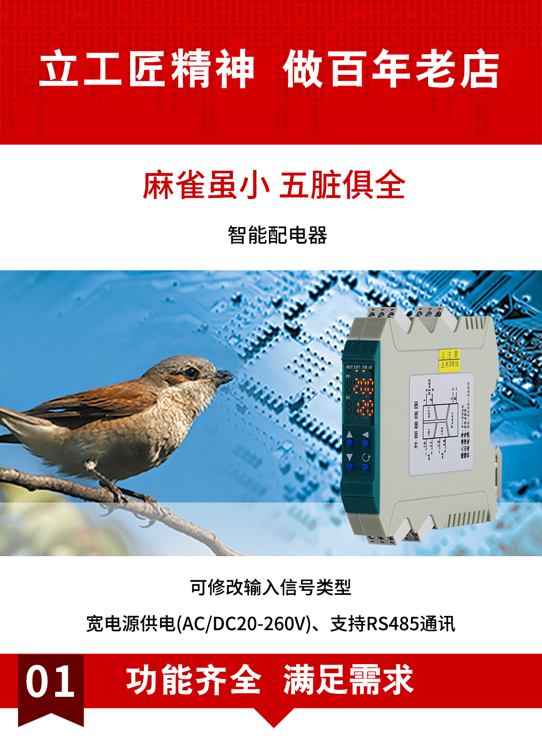 NHR-X33系列導軌式智能配電器給二、三線制變送器提供隔離的電源電壓,將變送器產生的直流電壓電流信號,經本隔離器轉換成所需的輸出信號至控制系統。寬電源設計:20-260V交直流供電。配置高清顯示單元,通過輕觸按鍵設置每個通道的參數及每個通道之間的切換。