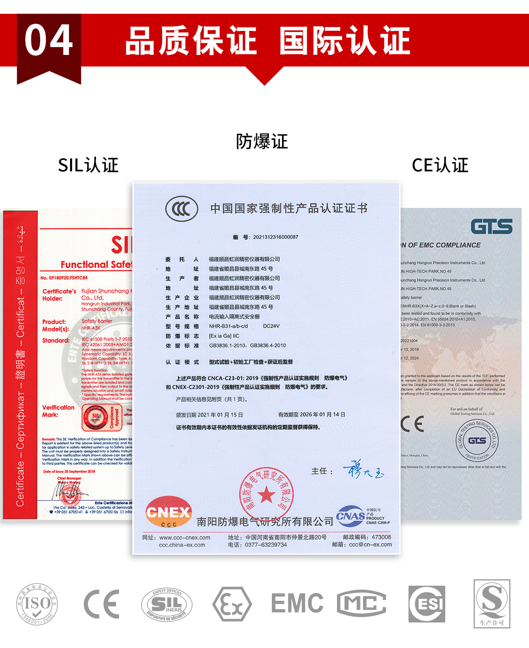 虹潤公司是專業生產隔離器的國家專精特新“小巨人”企業。生產的隔離式安全柵涵蓋信號電流輸入、電壓輸入、熱電阻輸入、熱電偶輸入、頻率輸入、開關量輸入等多種產品類型。產品獲得具備減震抗干擾能力的溫度變送器、信號隔離器、一種二端子模塊、無源信號隔離器等4項國家發明專利,主持起草物聯網智能溫度儀表、現場設備工具(FDT)接口規范、工業過程測量和控制系統用溫度變送器等3項國家標準,以及通信系統多通道數據采集控制終端規范軍用標準。參與國際5G標準制定,取得智能隔離式安全柵等4項相關軟件著作權。產品廣泛應用于石油、電力、化工,冶金、智能制造、污水處理等諸多行業。