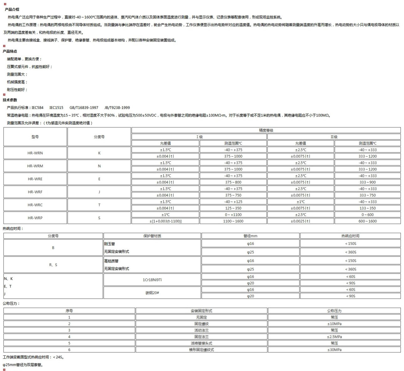 熱電偶(thermocouple)是溫度測量儀表中常用的測溫元件,它直接測量溫度,并把溫度信號轉換成熱電動勢信號,通過電氣儀表(二次儀表)轉換成被測介質的溫度。各種熱電偶的外形常因需要而不相同,但是它們的基本結構卻大致相同,通常由熱電極、絕緣套保護管和接線盒等主要部分組成,通常和顯示儀表、記錄儀表及電子調節器配套使用。