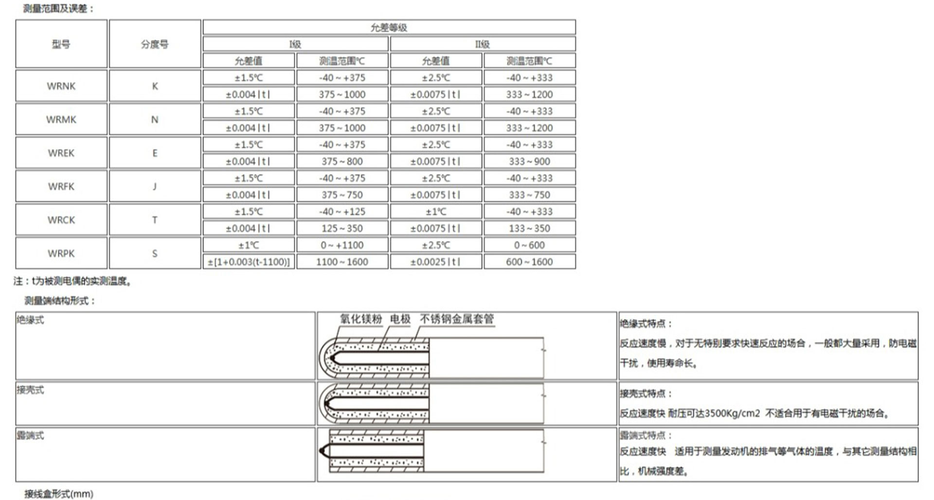 鎧裝熱電偶作為溫度測量傳感器,通常與溫度變送器、調(diào)節(jié)器及顯示儀表等配套使用,組成過程控制系統(tǒng),用以直接測量或控制各種生產(chǎn)過程中0-1800℃范圍內(nèi)的流體、蒸汽和氣體介質(zhì)以及固體表面等溫度。鎧狀熱電偶具有能彎曲、耐高壓、熱響應(yīng)時間快和堅固耐用等許多優(yōu)點。