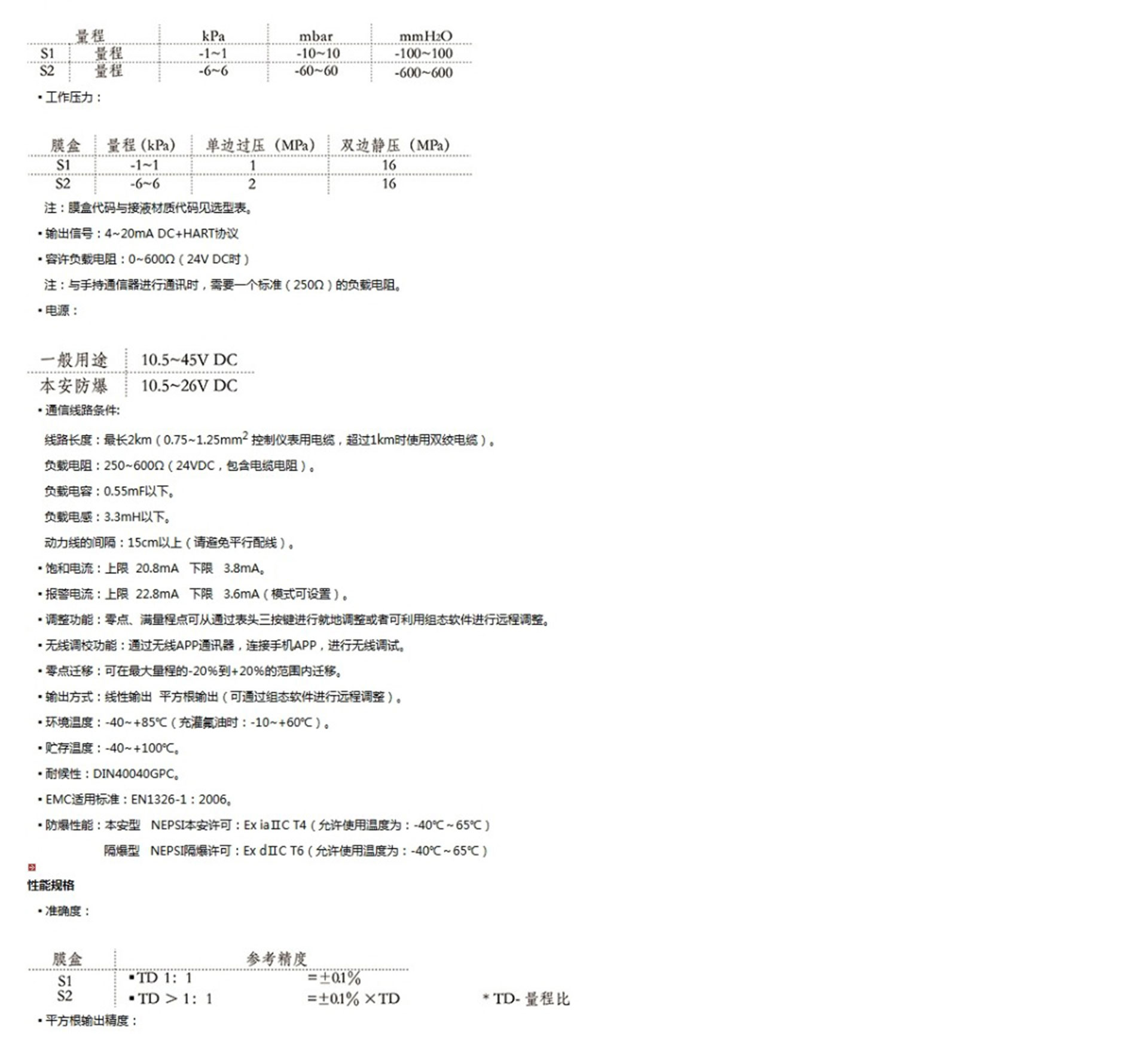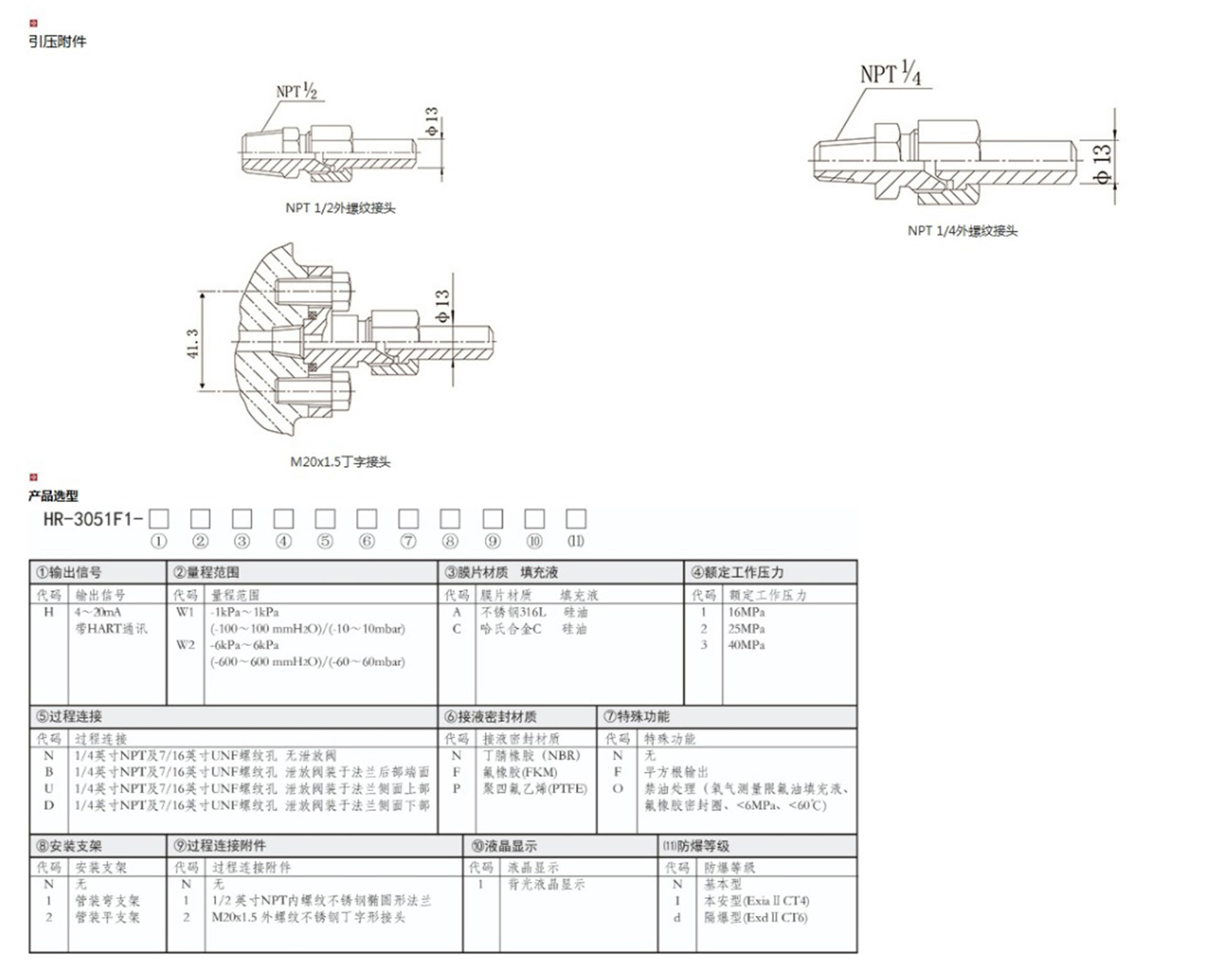 HR-3051F1智能單晶硅微差壓變送器能準確的測量差壓,并把它轉換成4~20mADC的輸出信號。該變送器可通過三按鍵本地操作,或通用手操器、組態軟件、以及手機APP遠程操作,在不影響4~20mA DC的輸出信號的同時,進行顯示與組態。