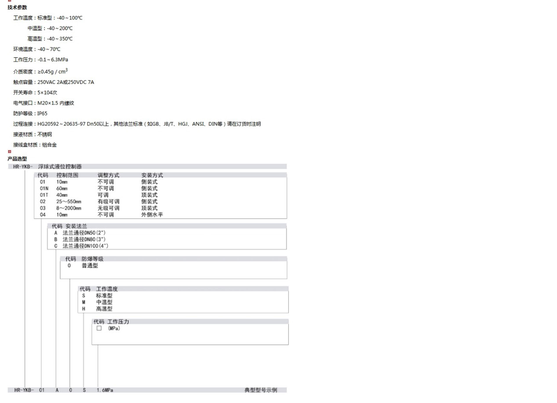 HR-YKB系列浮球式液位控制器,廣泛適用于石油、化工、電力、冶金、食品、制藥、造紙等行業,能實現對各類容器內液位的自動報警或控制。